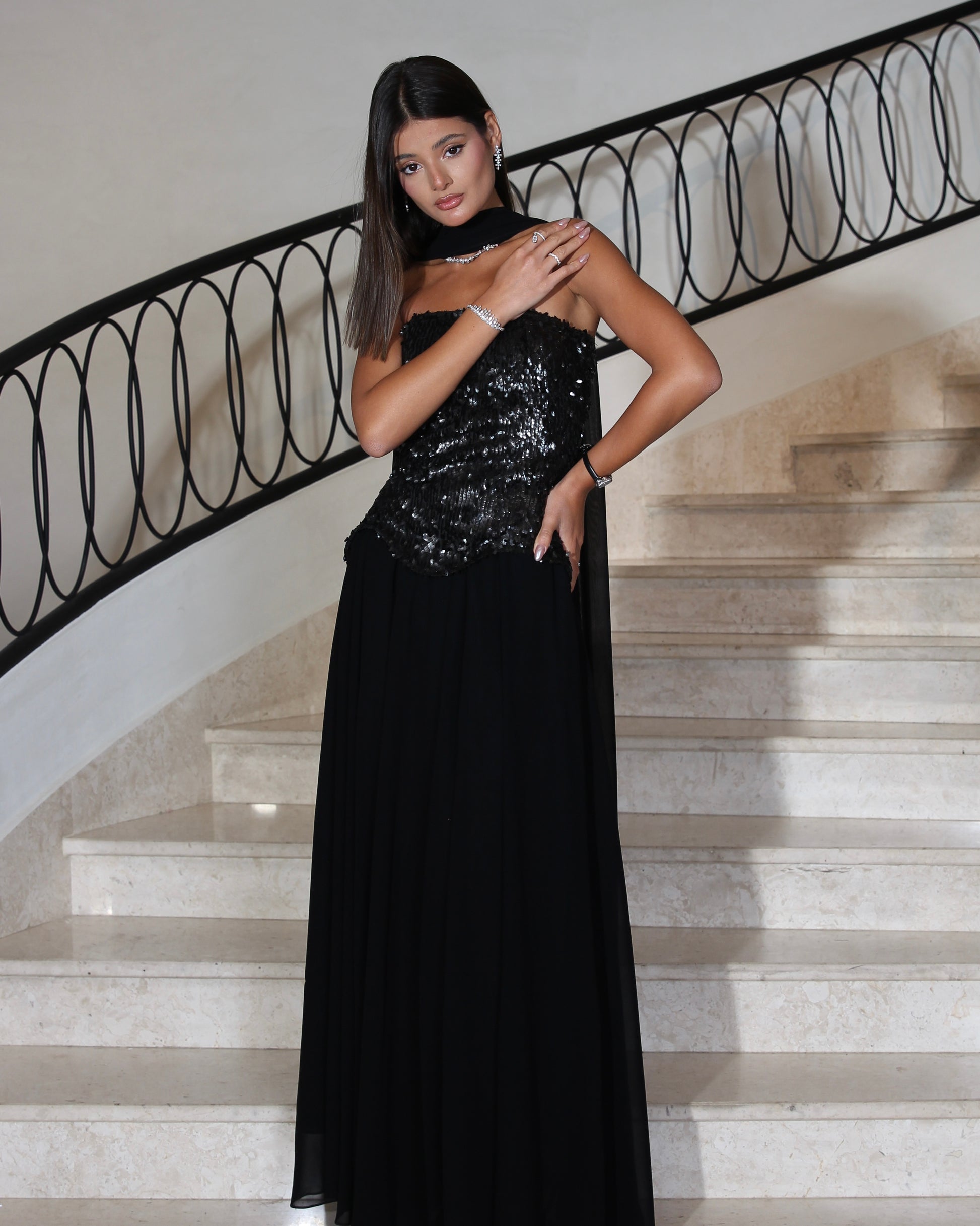 Model wearing length 58